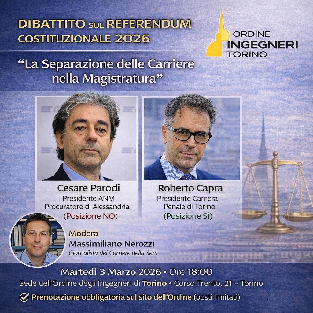 Referendum giustizia 2026: aperte le iscrizioni per il dibattito all’Ordine con Cesare Parodi e Roberto Capra